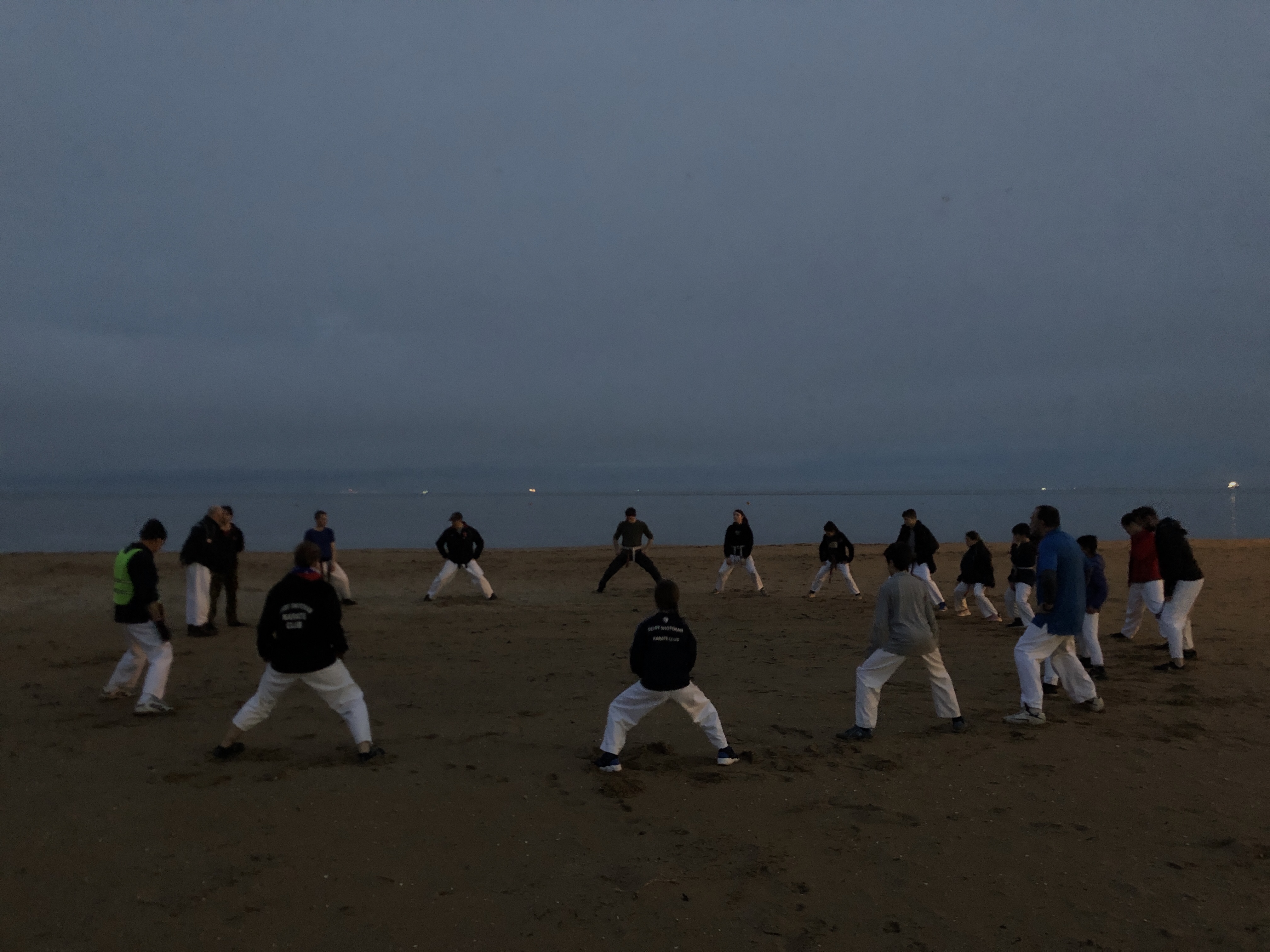 We meet up with our friends from Haxby Shotokan Karate Club and Kaizen-no-Michi Karate Club in Grimsby early in the morning while it's still dark. Typically we warm up, have a short run to get the blood flowing, then an hour of karate on the (often frozen) beach.